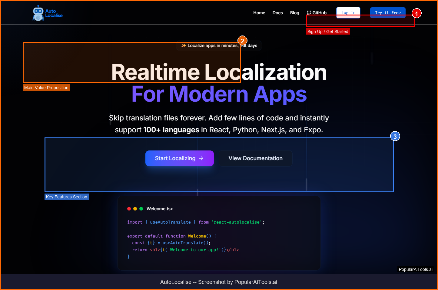 AutoLocalise homepage - Screenshot by PopularAiTools.ai