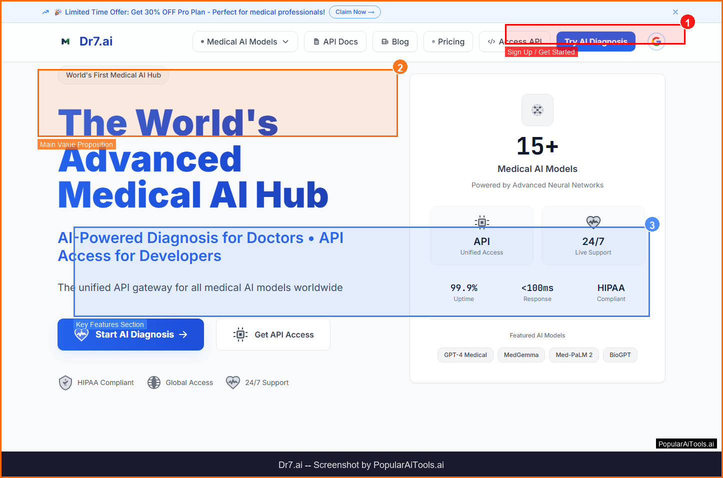 Submit Your ReviewDr7.ai is the world's first unified interface for medical AI models, giving healthcare developers and professionals access to 15+ specialized medical LLMs through a single API, including MedGemma, BioGPT, and Med-PaLM 2.