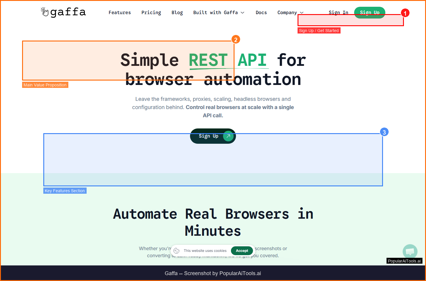 Gaffa is a REST API that lets you control real browsers at scale for web scraping, automation, and AI data extraction.