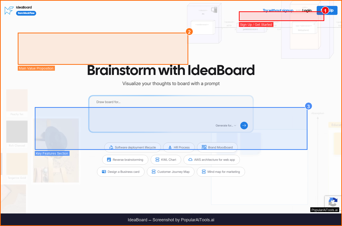 IdeaBoard is an AI-powered online whiteboard from MockFlow that generates custom templates for brainstorming sessions, strategy meetings, flowcharts, Kanban boards, and technical diagrams from simple text prompts. It combines real-time collaboration with AI-generated content to supercharge team planning.