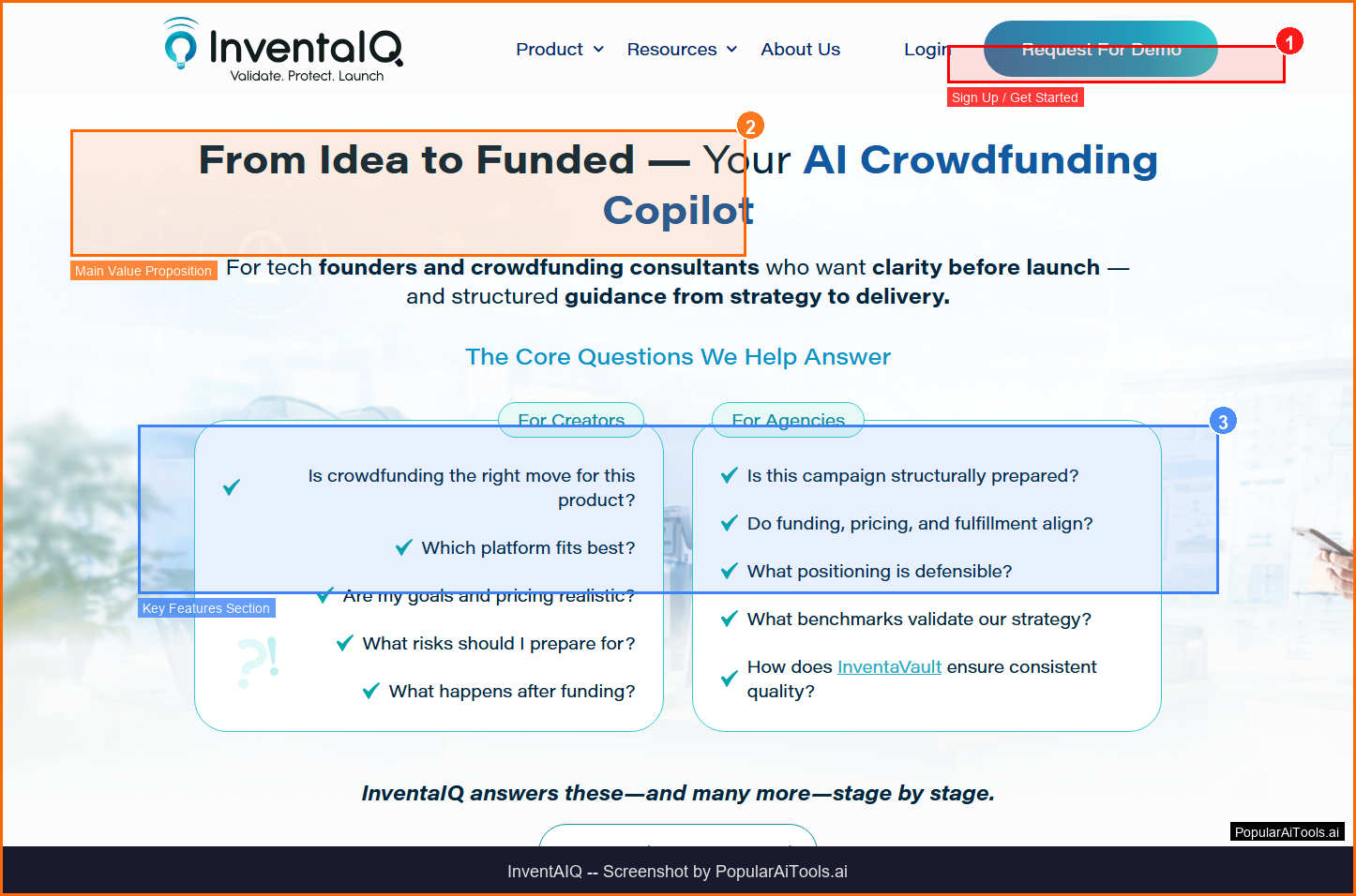 InventAIQ homepage - Screenshot by PopularAiTools.ai