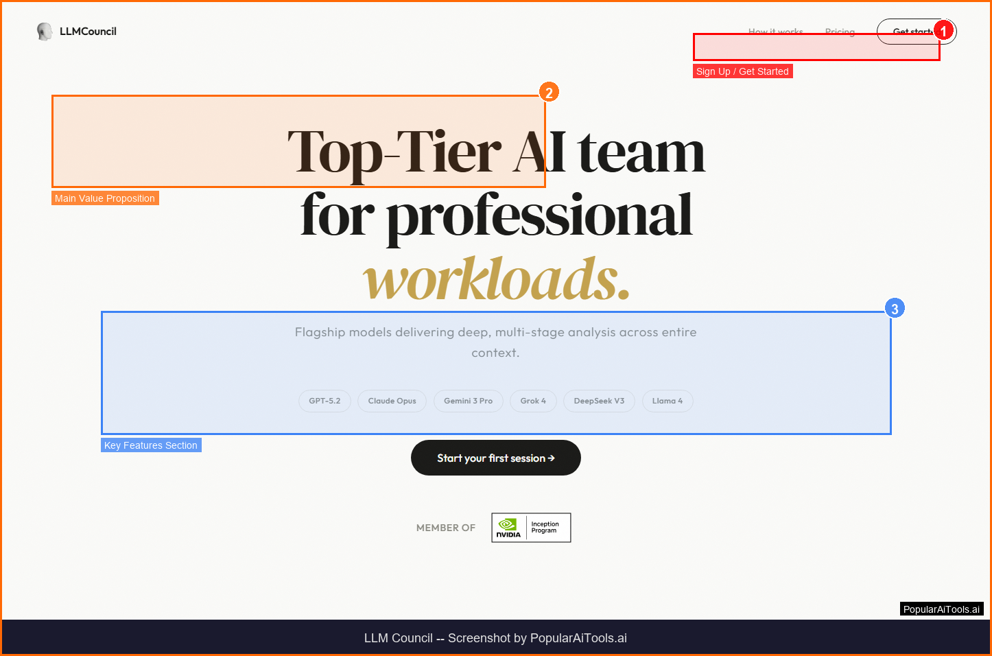 Go to https://llmcouncil.com and create your account. Most tools offer a free tier or trial to get started.