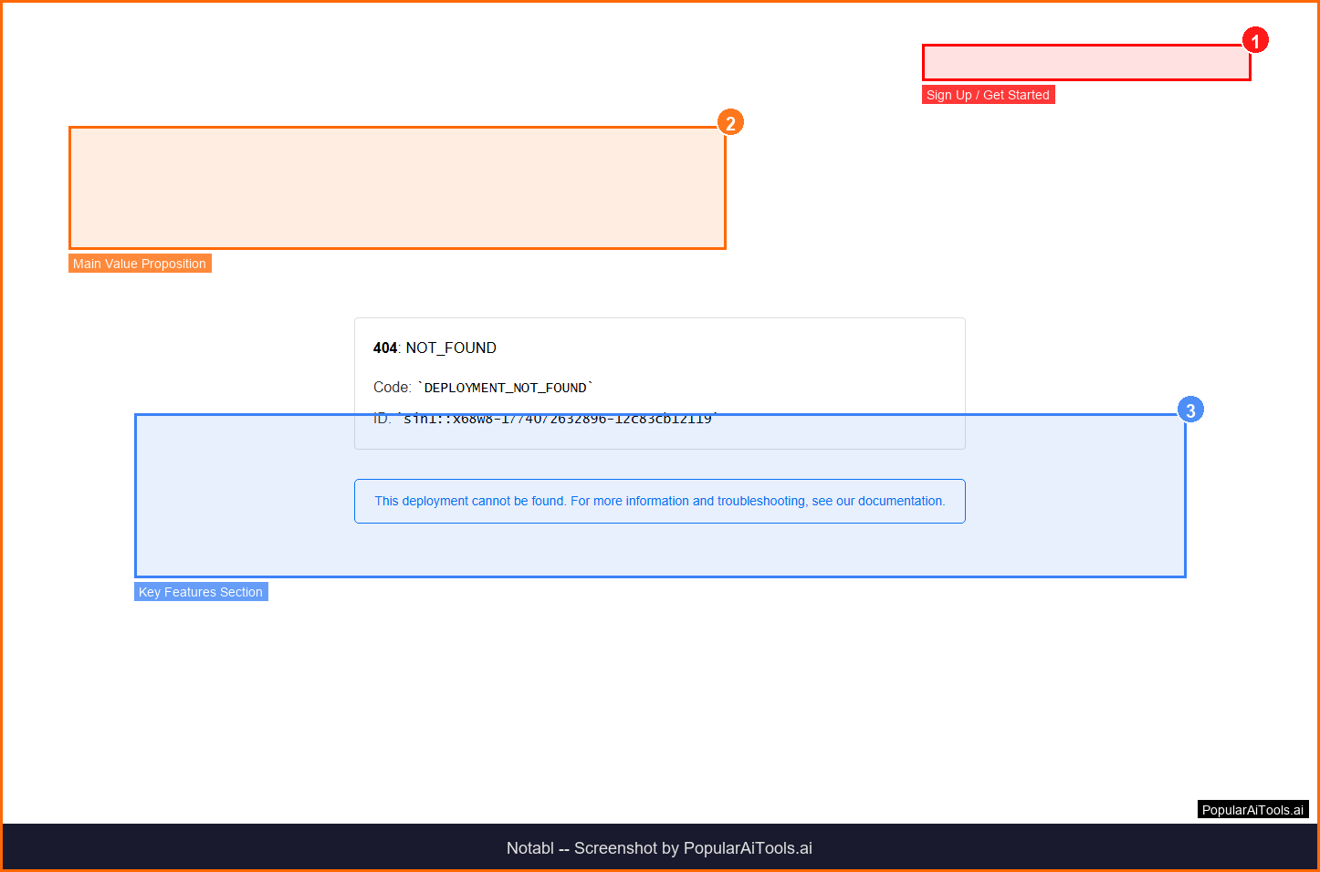 The Notabl homepage — key features and navigation highlighted