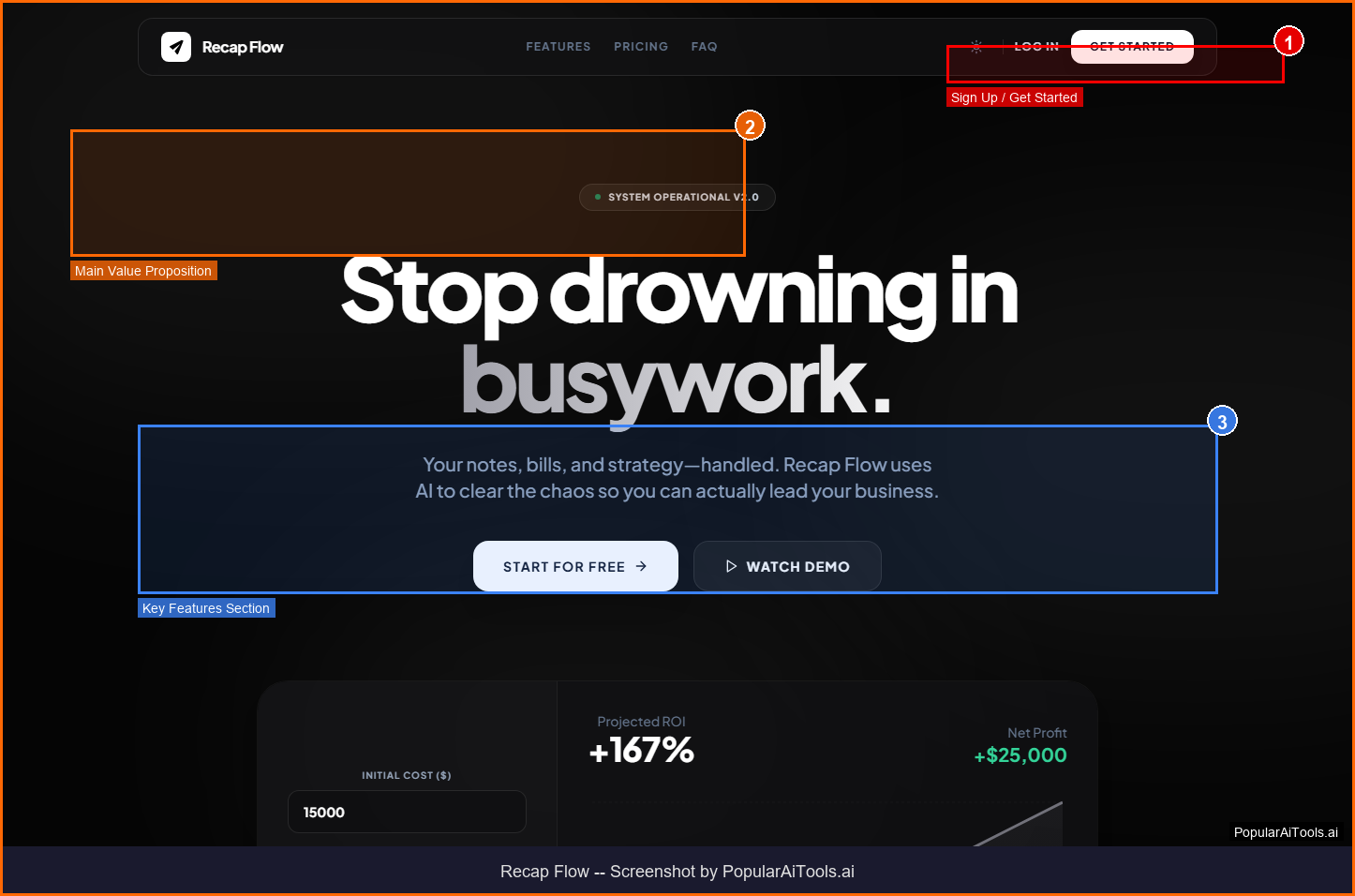 Recap Flow homepage - Screenshot by PopularAiTools.ai