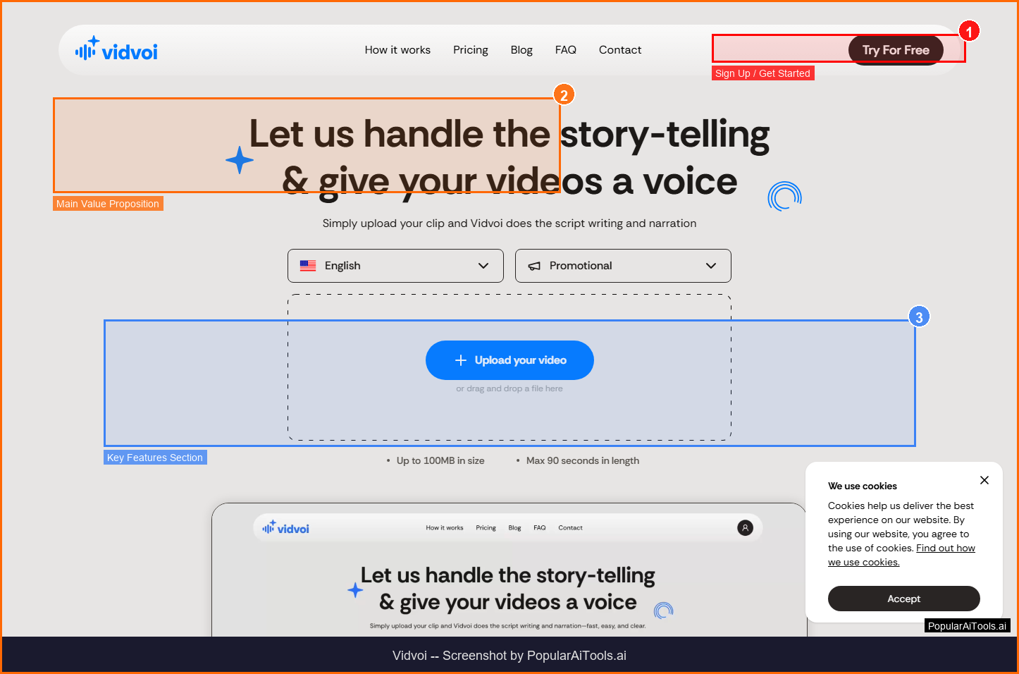 Vidvoi homepage - Screenshot by PopularAiTools.ai
