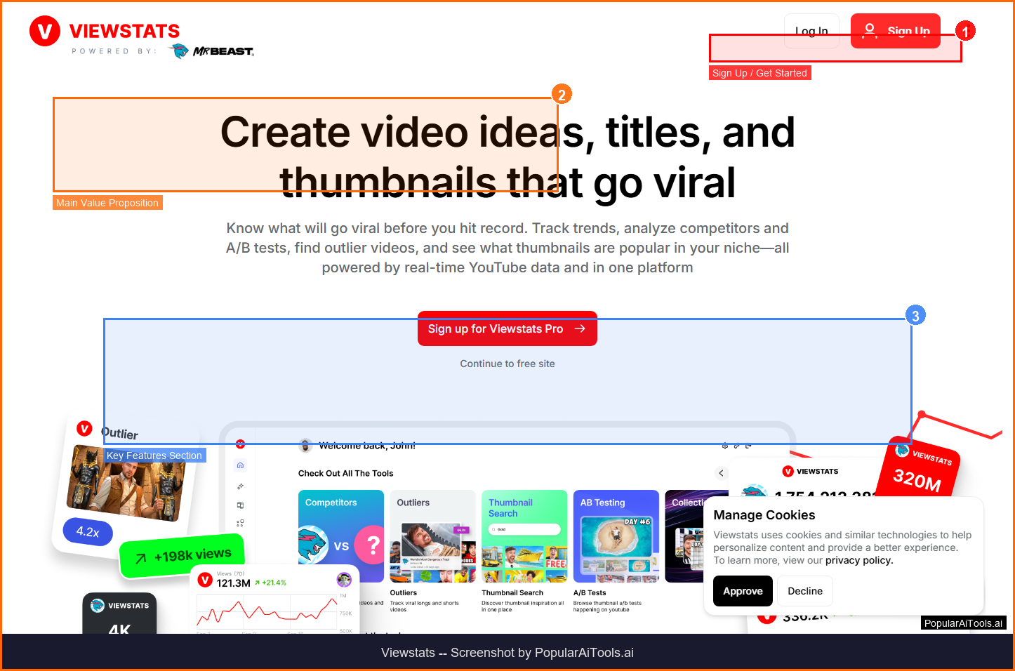 Submit Your AI Tool →Viewstats was co-founded by MrBeast (Jimmy Donaldson) and Chucky Appleby. The analytics engine was developed from tools that helped push MrBeast channel from 1 million to over 300 million subscribers.