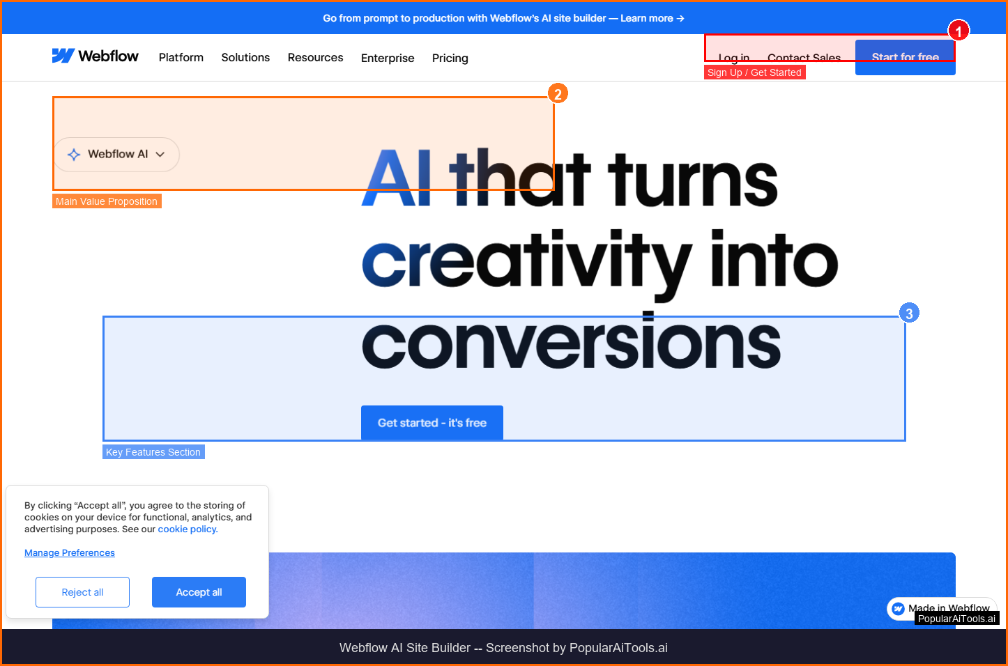 Webflow AI Site Builder homepage - Screenshot by PopularAiTools.ai