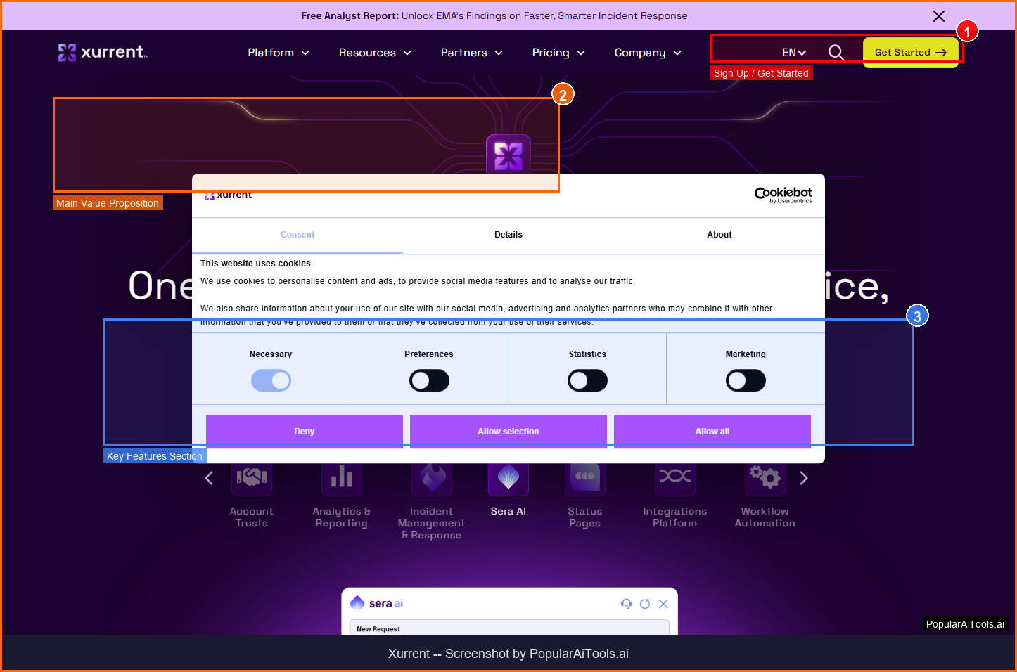 The Xurrent homepage — key features and navigation highlighted